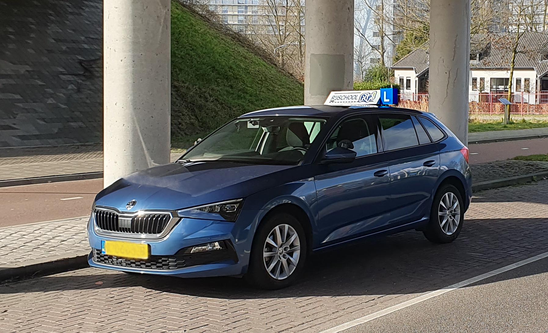 De rijlessen vinden plaats in een Skoda Scala, een schakelauto voorzien van diverse ADAS systemen zoals cruise control/ snelheidsregelaar, lane-assist/ rijstrookassistent, achteruitrijdcamera. Een heerlijke auto om in te leren autorijden.